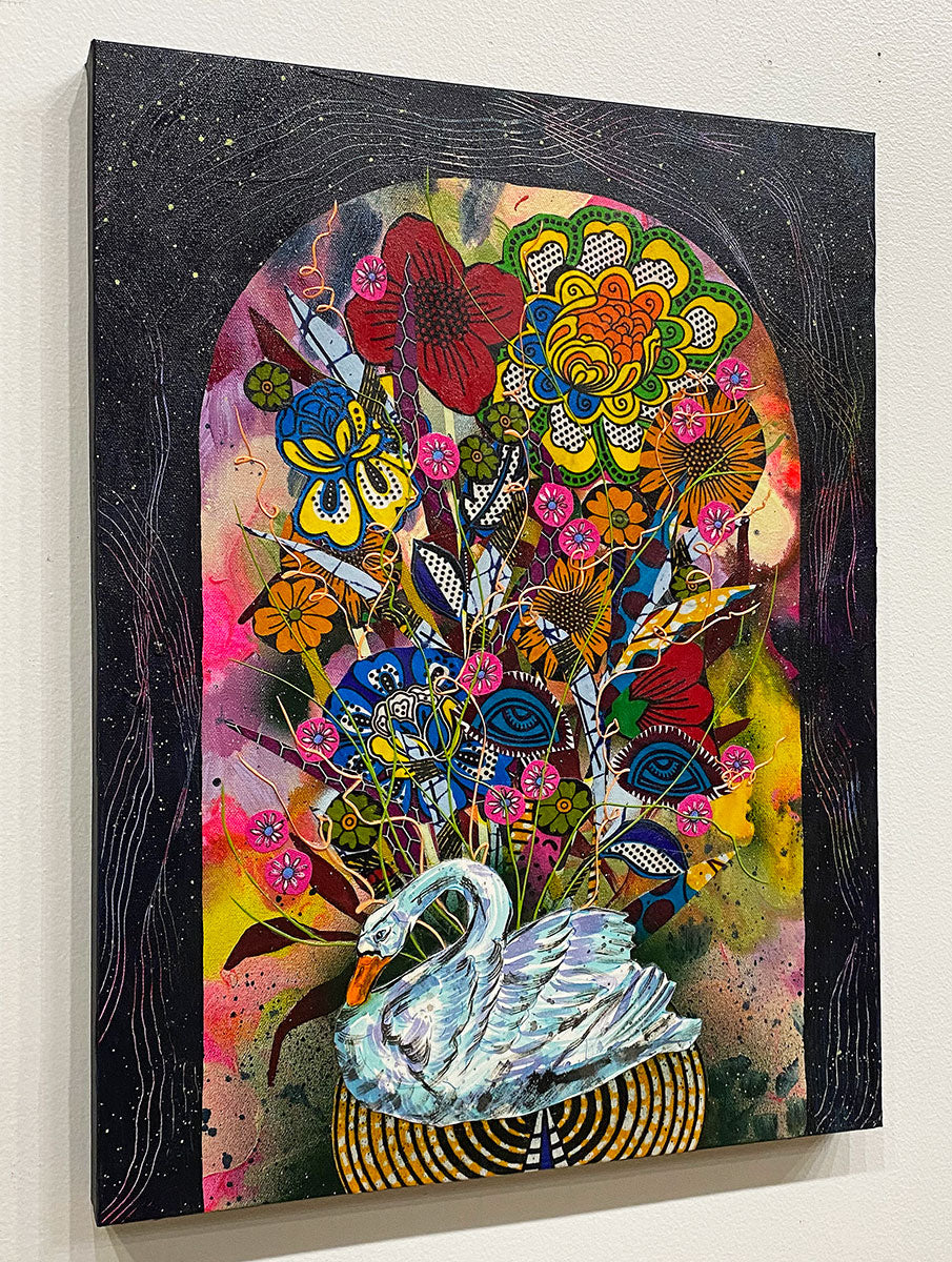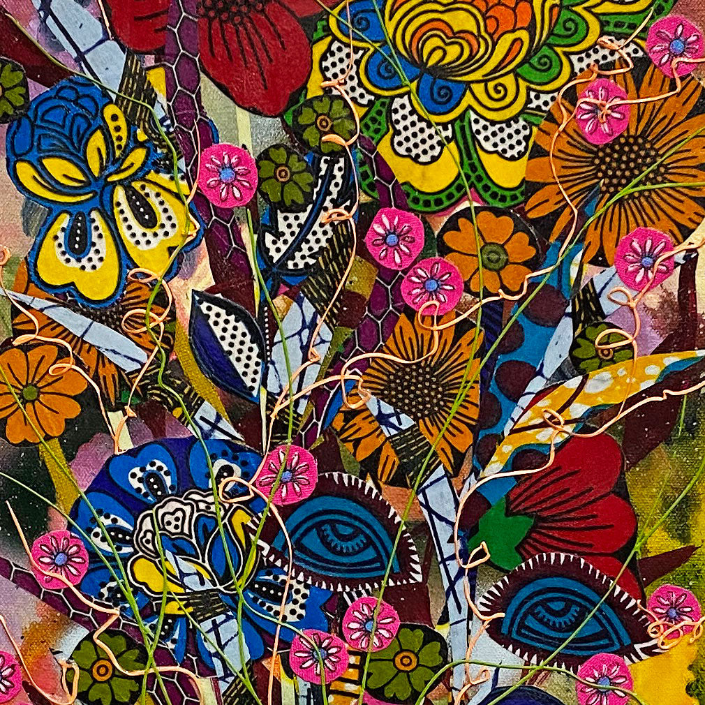 mixed media- acrylic, fabric on canvas